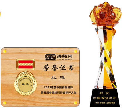 恭喜段曉老師榮獲萬師講師網2023年度中國百強講師 暨第五屆中國培訓行業標桿人物