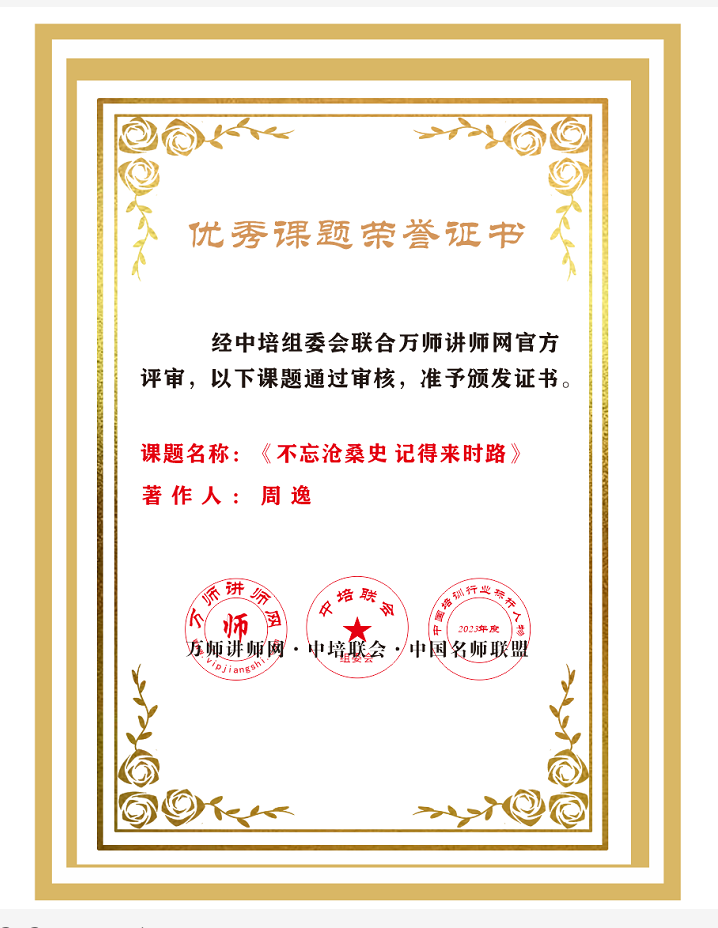 恭喜周逸老師榮獲萬師講師網2023全國優秀講師&優秀課題榮譽 暨第五屆中國培訓行業標桿人物