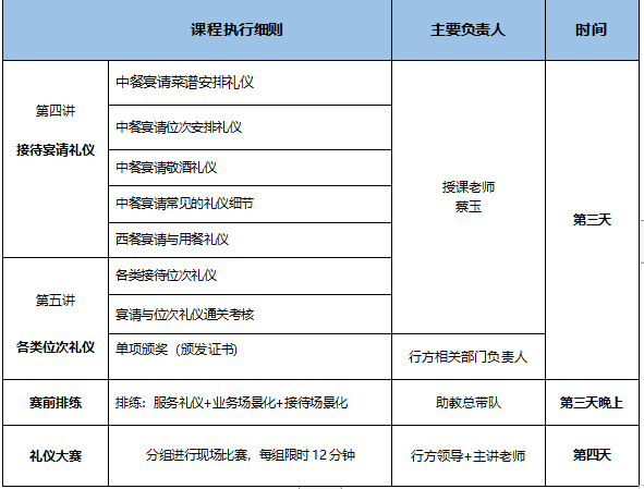 銀行禮儀大賽輔導(dǎo)課程安排如下: