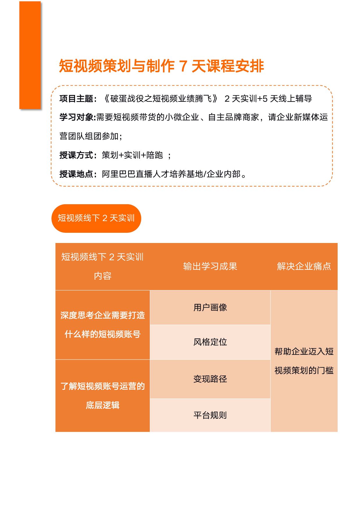 60%授課+25%實操演練+15%點評,理念之道深入和案例分析淺出。豐富性與實用性,邏輯性與幽默感,創造性與干貨型,案例來源于企業咨詢輔導實際經驗。